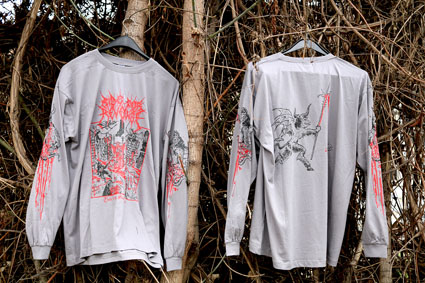 - long-sleeve shirts- front and both sleeves printed with metallic silver ink @ 23e