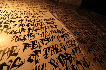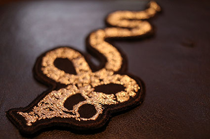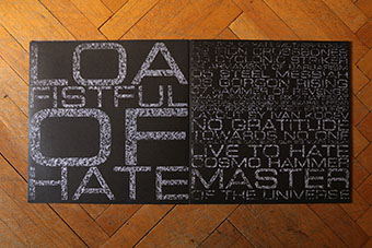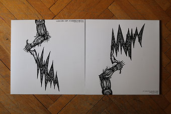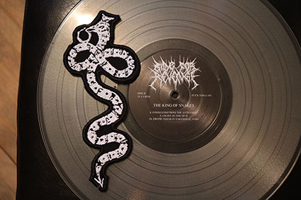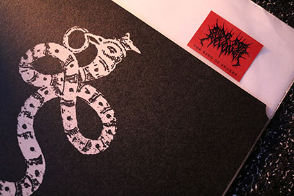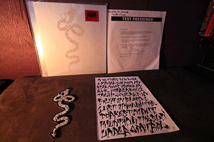 - 20 x test presses- cover printed in silver ink, snake patch embroidered with a silver thread + an original sheet of calligraphy used for the lyrics @ 60e