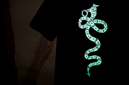 - short-sleeve shirts- front: red logo, back: white snake that illuminates in dark) @ 16e